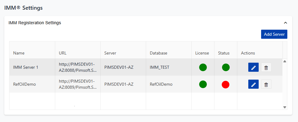 To register a new IMM Server, click the Add Server button. See IMM Server Registration for more details.