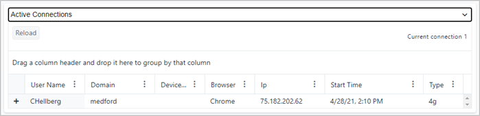 Item Description Current connection # The number of concurrent browsers sessions. This is typically less or equal to the maximum number of licensed concurrent sessions. For each browser session, the following information is shown
