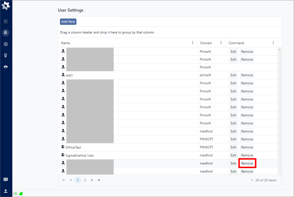 As the Administrator of SFHub, you can remove a registered user at any time. When a user is removed, you are unregistering their user name from SFHub, which in turn prevents them from being able to access any of the applications available through SFHub.