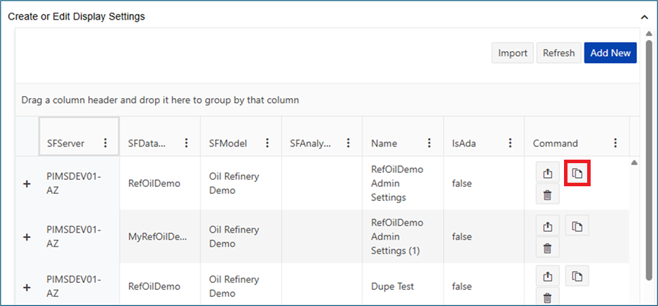 Click the Duplicate button associated with the Display Setting you want to duplicate.