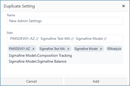 You can only duplicate Display Settings to a server, database, and model visible by your current SFHub instance. If you want to duplicate a Display Setting across different SFHub environments, you can use the Export/Import Display Setting feature.