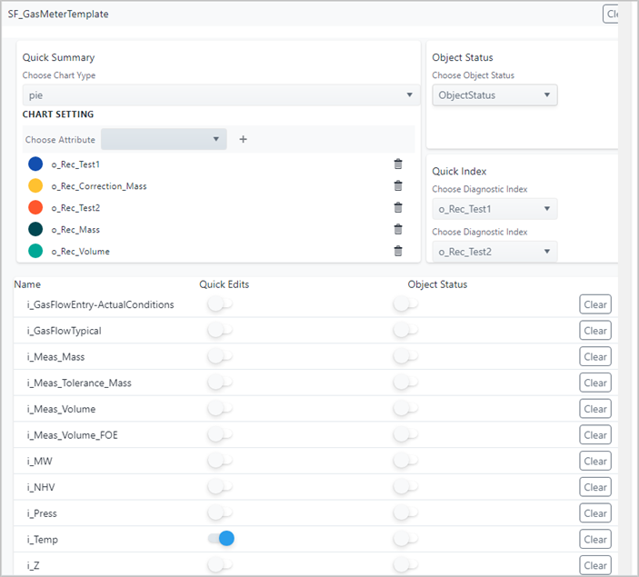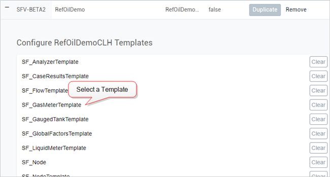 A panel opens displaying the current settings for the selected Template.