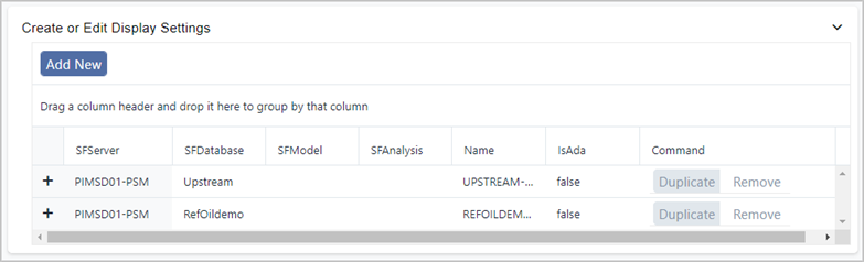 This section shows Display Settings that have already been created.