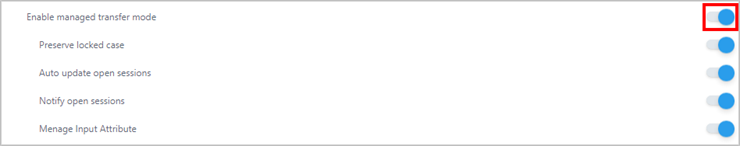 Setting Description Enable managed transfer mode When the managed transfer mode is enabled, all Cases referring to an added, deleted or modified transfer, are marked, indicating that a new 'Collect Transfers' is required. The following settings can be changed ONLY when the Enable managed transfer mode setting is enabled.