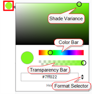 d. To change the transparency of the color, drag the Transparency Bar circle along the bar until you reach the transparency you want to use.
