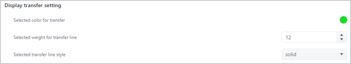 The Display Transfer Setting allows you to define the color, weight and line style that represents Transfers in the SFHub Visualizer Display panel. Display Transfer Setting preferences are applied to all displays that you view in Sigmafine SFHub Visualizer. Should you not set a personal Display Transfer setting preference, then the setting defined by the SFHub Administrator is applied to all the displays you view in SFHub Visualizer.