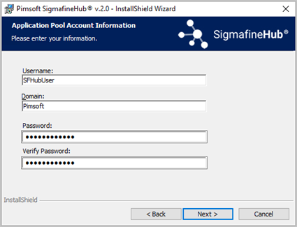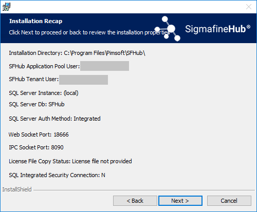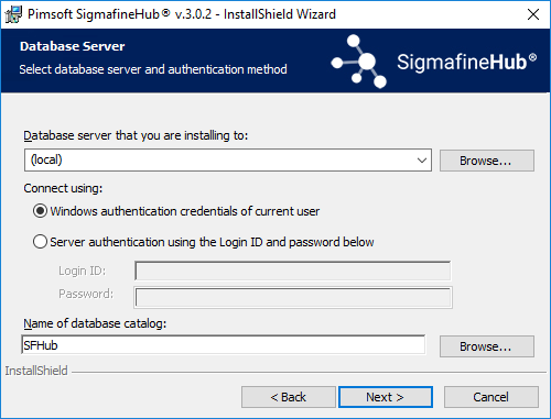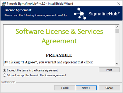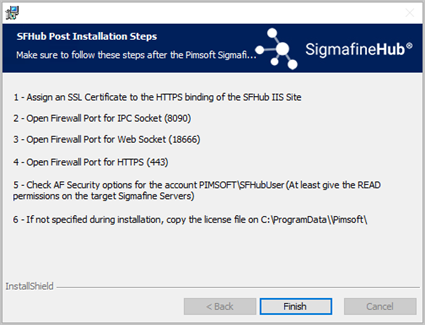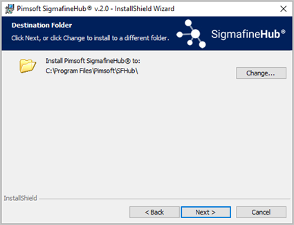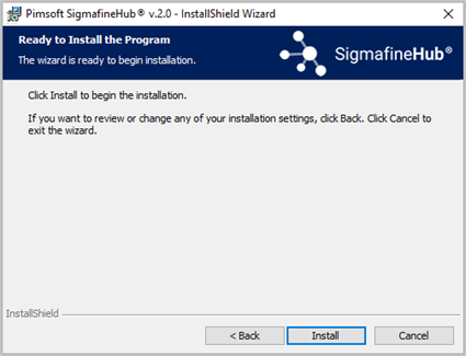 Installing Pimsoft SigmafineHub page