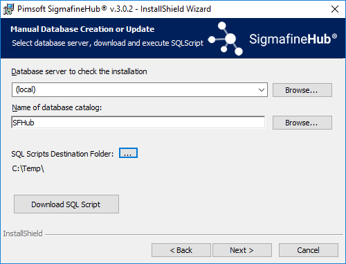 In this mode, you are required to download and execute the SQL Scripts to create or update the SFHub SQL database.