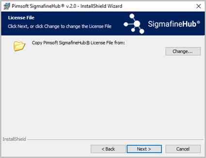 Click the Change button and select the license file provided by Pimsoft.
