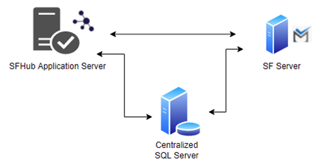 In such a scenario, SigmafineHub is installed on a different computer than the SF Server and the SFHub SQL Server database.