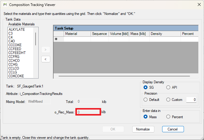 Error, Element: SF_GaugedTank1, Attribute: CompositionTrackingResults. The composition table is not initalized.