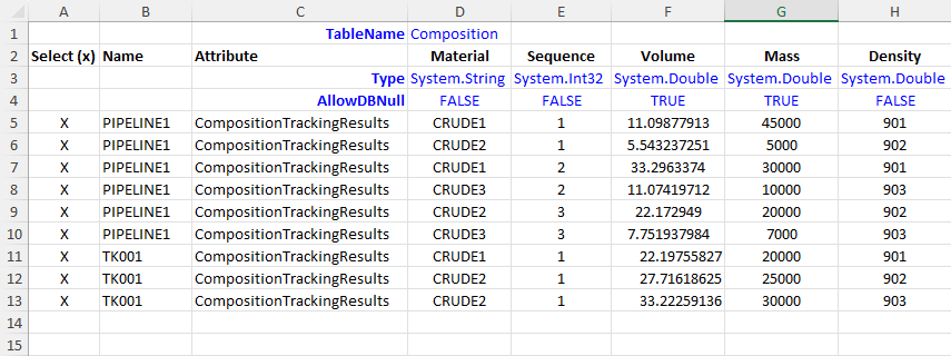 When working with a large number of inventory tanks, you can use the Data Importer to import composition data from a file rather than entering it manually.