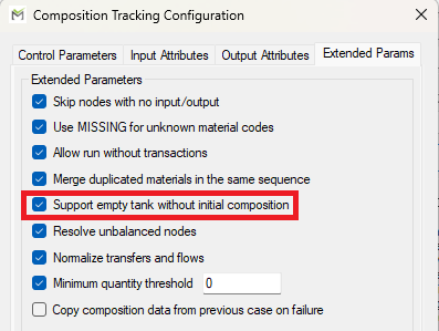 This condition may raise an error when running the next cases if the composition tracking rule is configured to require the composition of the tanks.