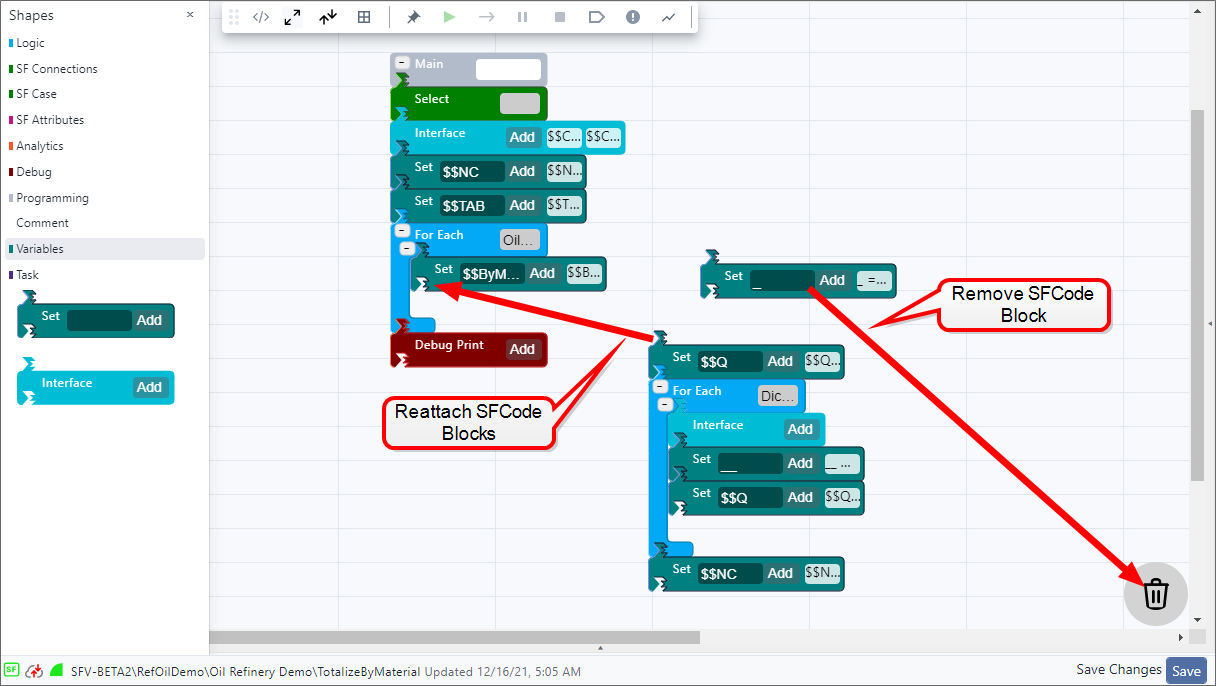 Drag SFCode Block to trash