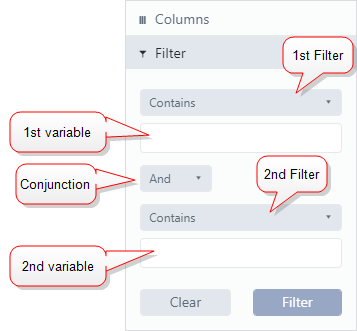 (Optional) In the text box below the second filter, type the variable/value to which you want to apply this filter either in lieu of the first filter, or combination with it.