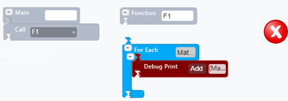 Main and Function SFCodeBlocks should have attached SFCodeBlocks representing the logic