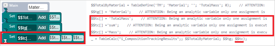 | Set Code Block - Totalize Attributes of Type Table | Code Transcription |