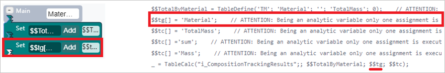 recorded in the analytic variable $$TotalByMaterial of type