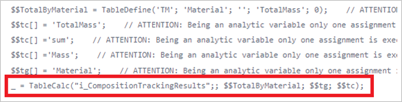 Store output of the TableCalc code block and code