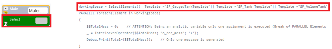 Using the Select SFCodeBlock we will optimize the analytic execution to the tank only that are in the scope of the analytic.