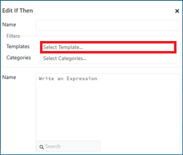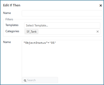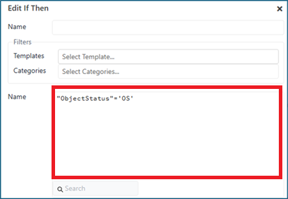 | If Then Else | Allows you to customize the conditional expression, based on elements whose template matches the templates selected in the configured pattern. It also allows you to split complex conditional expressions into smaller pieces. Using patterns, without specifying template or category, is equivalent to an OR condition between all expressions. |
