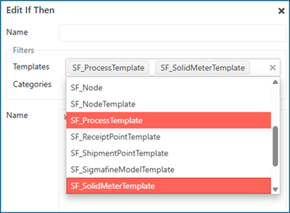 | Templates | Optional | This is a drop-down list that allows you to select the element templates. Element Templates drop-down list example ![]() The listed Element Templates are those that are configured in the Sigmafine database on which the SFHub project is linked. If no element templates are selected, it is assumed that all the AF Elements in the working space are involved in the configured pattern. |