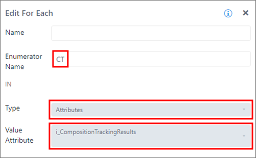 In this example, the enumerator 'CT' is used to enumerate the rows of the composition tracking table stored in the attribute 'i_CompositionTrackingResults'.