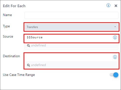 For Each - Transfers Configuration Panel