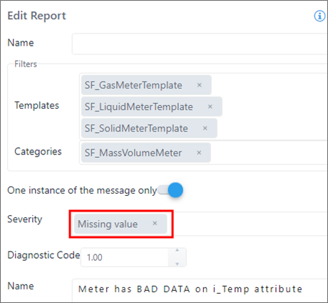 In this example, a Report is created for all the meters having a BAD VALUE on the i_Temp attribute.
