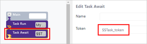 Task Await Configuration panel - Token