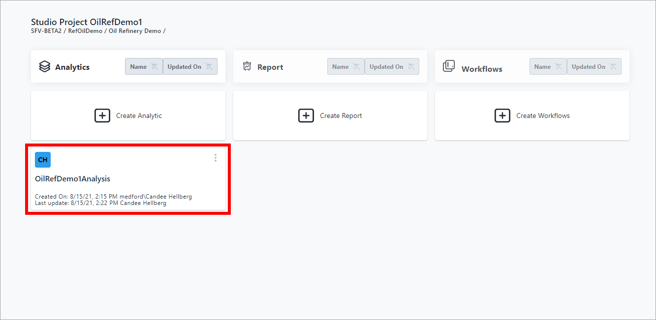 Studio Project [project name] - Analytics, Reports and Workflows