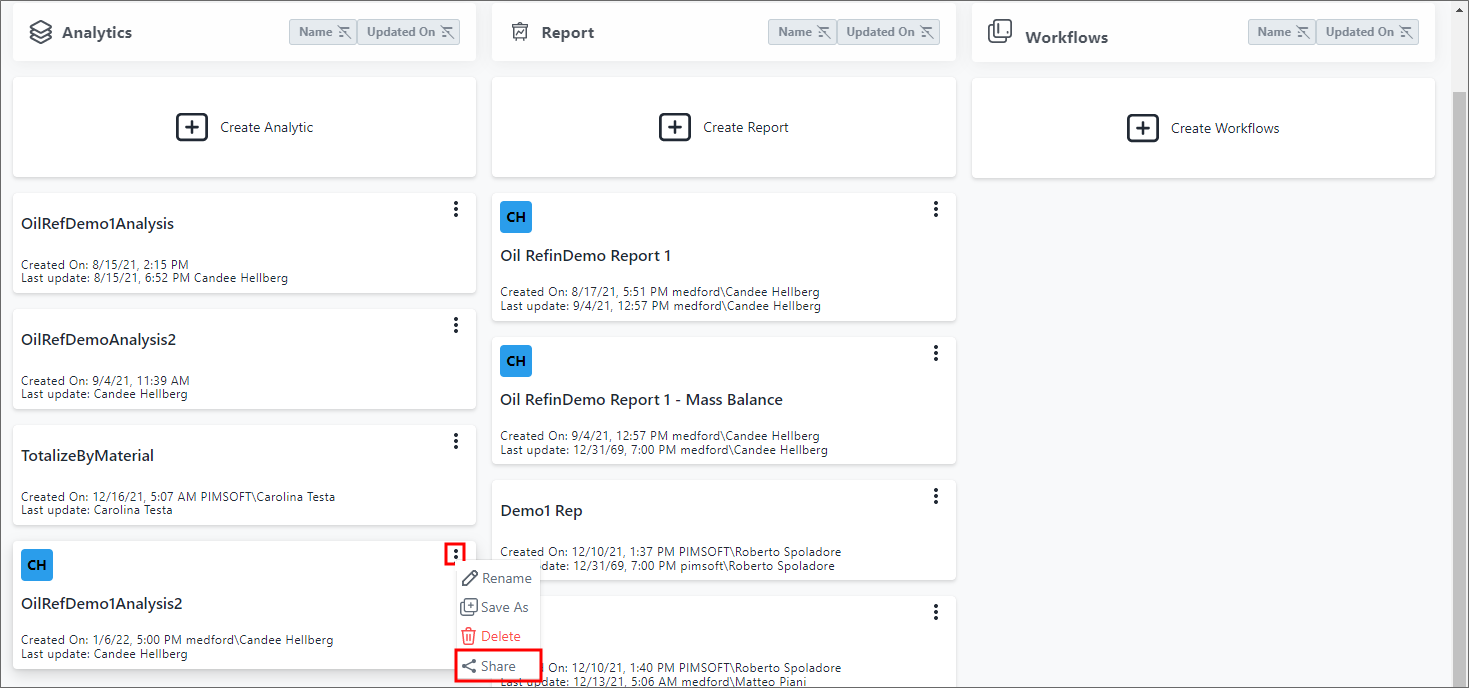 The Share tab is where you find and add the users you want to share the analytic with. As you begin typing the name of a user, all users with that character (or those characters) appear in a list.