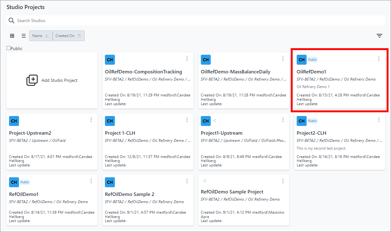 Studio Projects - select Project