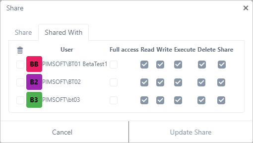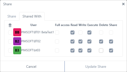 g. Click Update Share to save your changes.