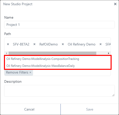 The panel updates to display all available SFAnalysis items of the selected SFModel.