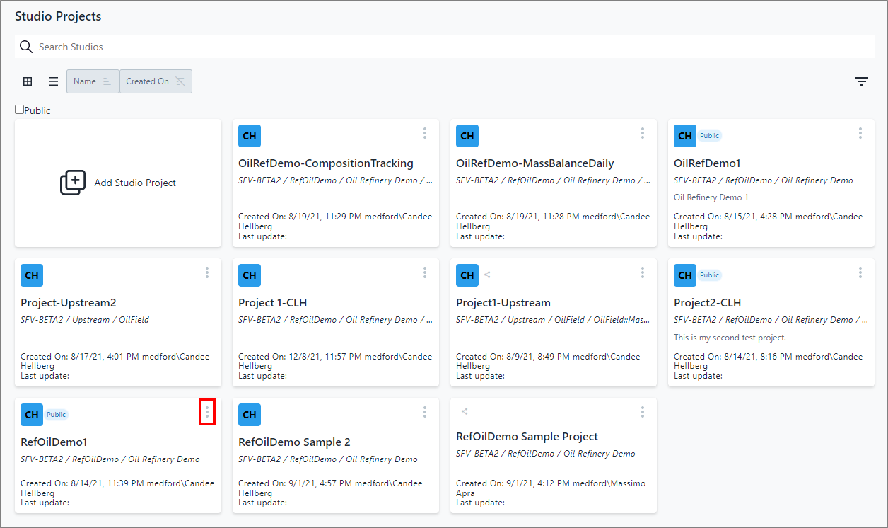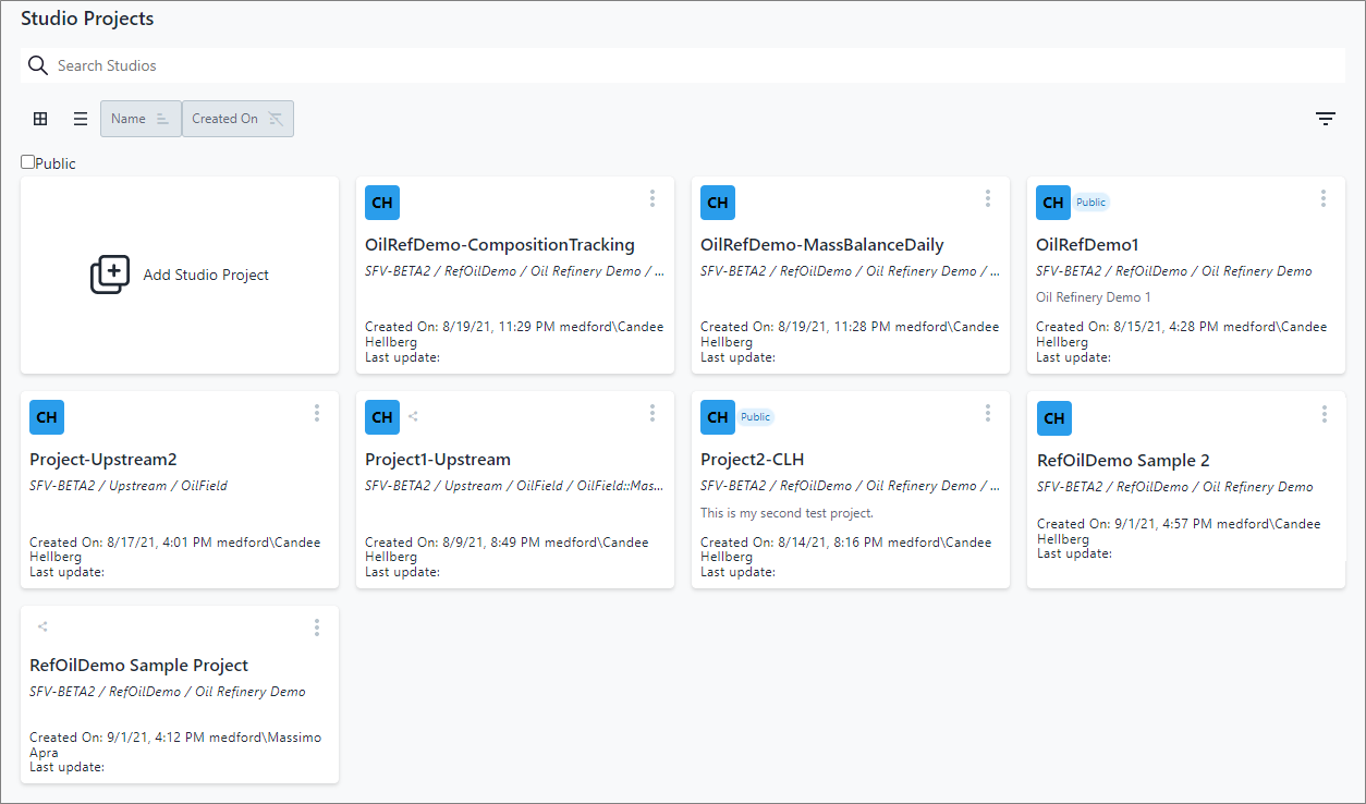 The project and all its content is removed from SFHub Studio, providing there are no other projects or SFHub entities that refer to it. In the image below, notice how the Project 1-CLH project is no longer listed, because that is the project we had chosen to delete in our example.
