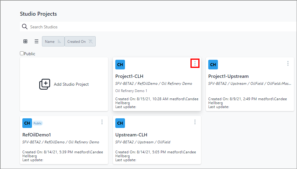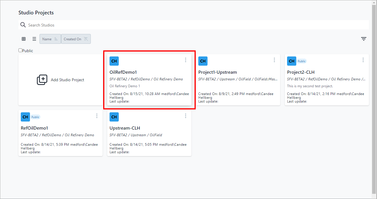 Your changes are saved and now visible on your Studio Projects dashboard, as shown in the following example.