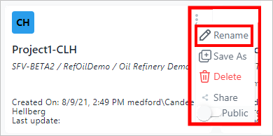 vertical ellipsis in the top-right corner of the project block (as shown in Figure 1) to display the Project quick menu (as shown in Figure 2).