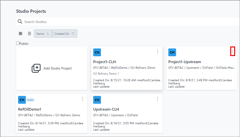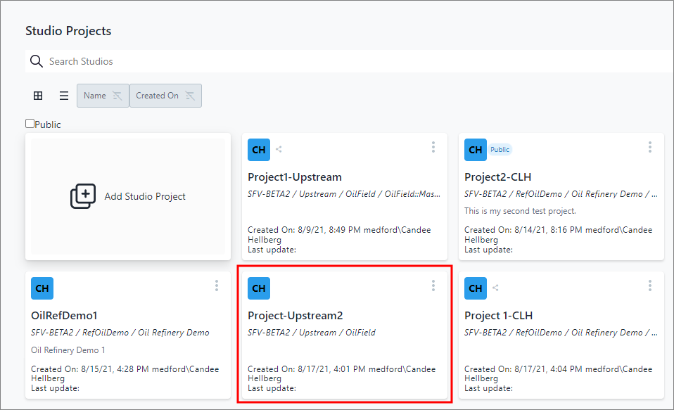 New project displays on your Studio Projects dashboard