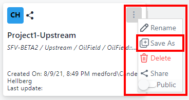 Project quick menu - select Save As