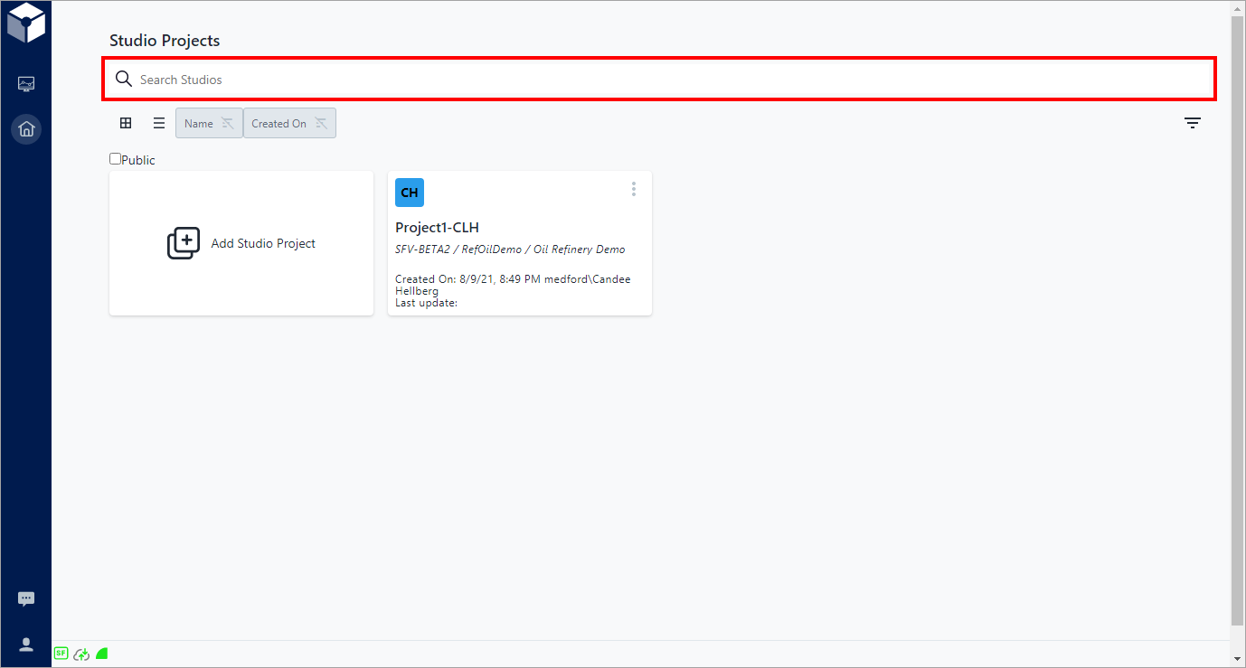 SFHub Studio includes a Search feature that allows you to quickly find a project by searching on part or all of the project name.