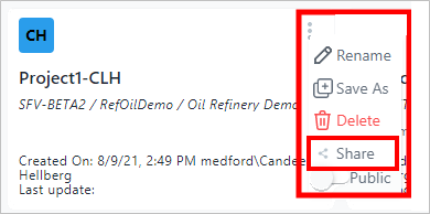 Project quick menu - select Share