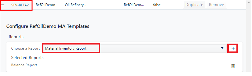 e. Click the Choose a Report box and choose Material Inventory Report from the list.