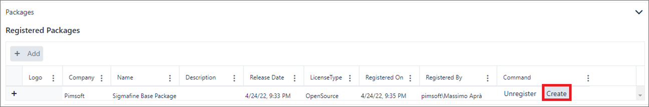 If the Studio Package Admin or Studio Package Create access is granted to you, the Create Studio Project icon is shown on the item line. The icon indicates that you are able to create a new Studio Project from a Package.