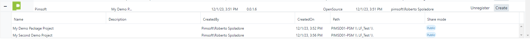 The Registered Packages panel lets you view the Projects created from a Registered Package, by allow you to expand the Package.