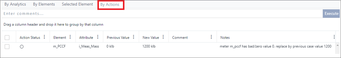 The By Actions tab opens the By Actions panel that provides an overview of all the actionable insights generated by the analytics executed in the context of the selected Sigmafine case.