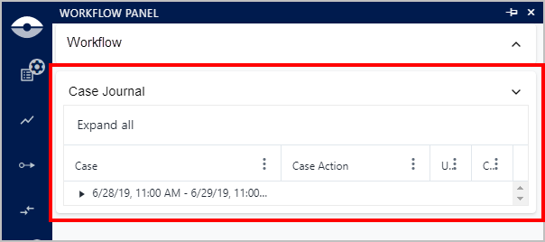 The following table provides descriptions of the columns in the Case Journal sub-panel.