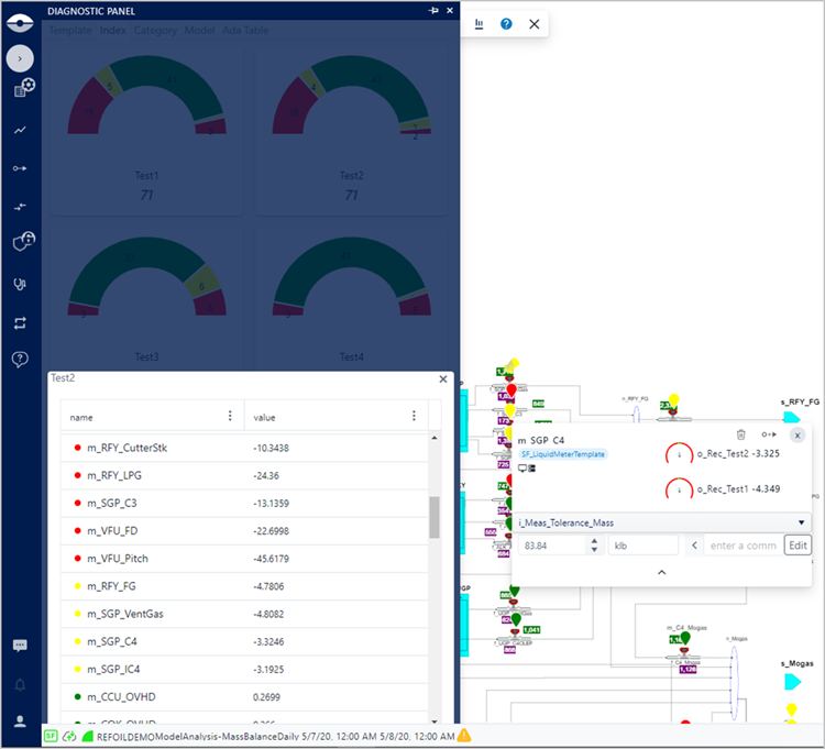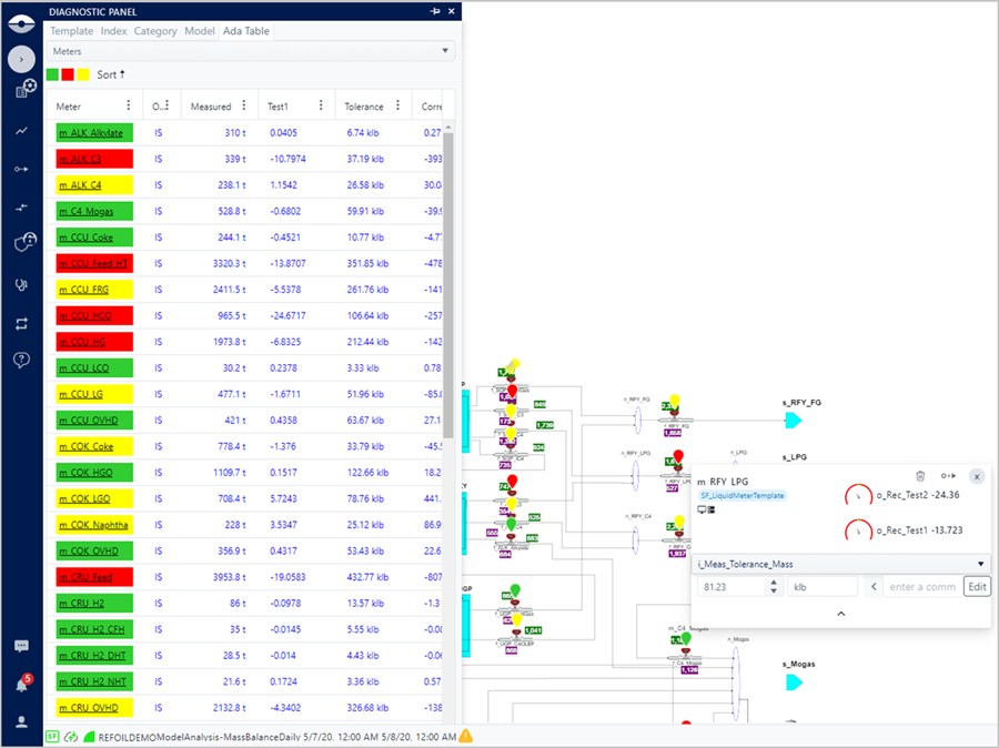 The Diagnostic panel is used to obtain evidence of the Sigmafine statistical reconciliation indexes which help you to identify the source of potential data issues. It also shows the ADA Result table where Sigmafine results are presented in a tabular format according to the ADA configuration stored in the Sigmafine database.
