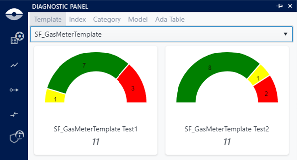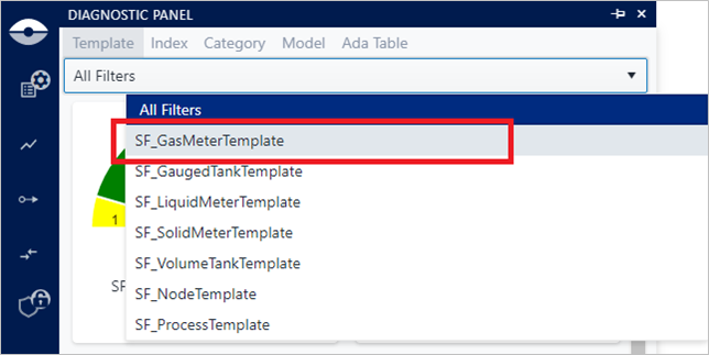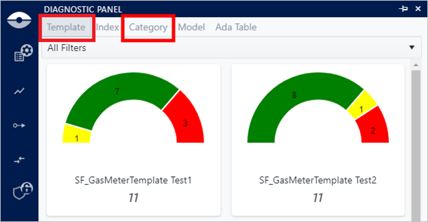 The Filter feature in the Diagnostics panel can be used to filter out the graphs represented for the Template and Category diagnostic groups. The filter available depend on the diagnostic group you select. If you select: