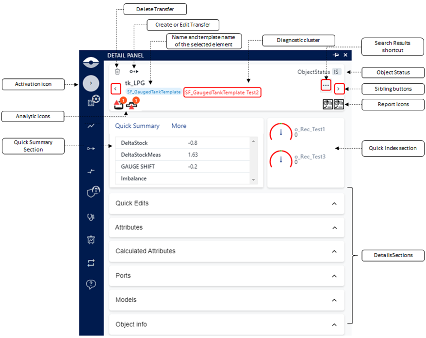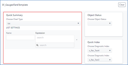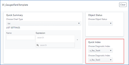 | Diagnostic cluster | When you are navigating an element collection of a diagnostic index, this area displays the diagnostic index cluster that you had selected in the SFHub Diagnostic panel. For example, if you are navigating through the diagnostic index Test2 of the SF_GaugedTankTemplate, this area shows that information. |